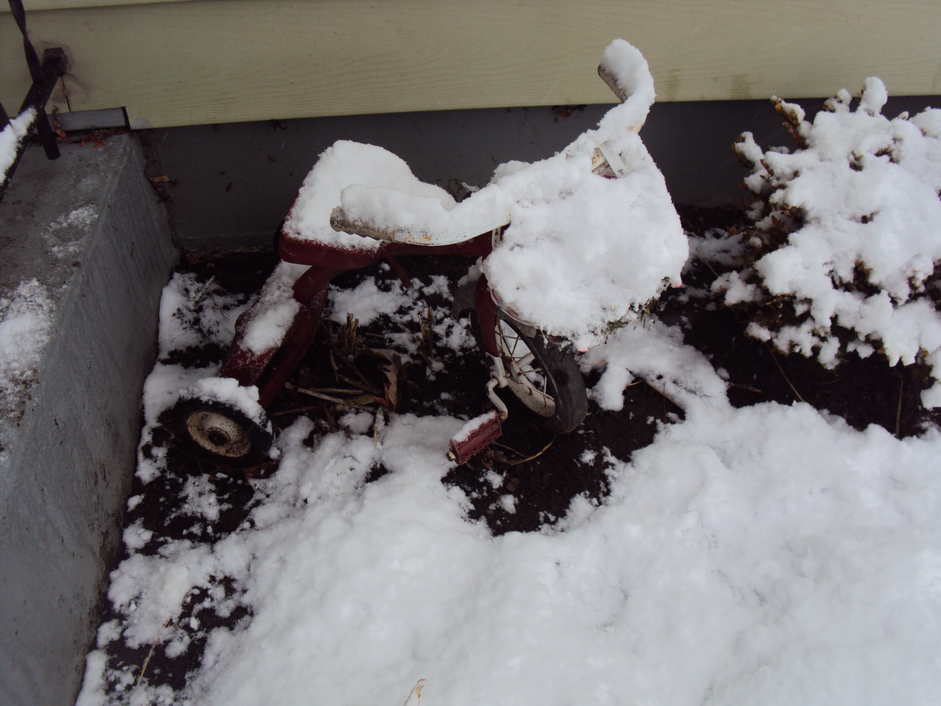 My old childhood tricycle that has seen better days is now a planter and part of the Winter Interest around my house.